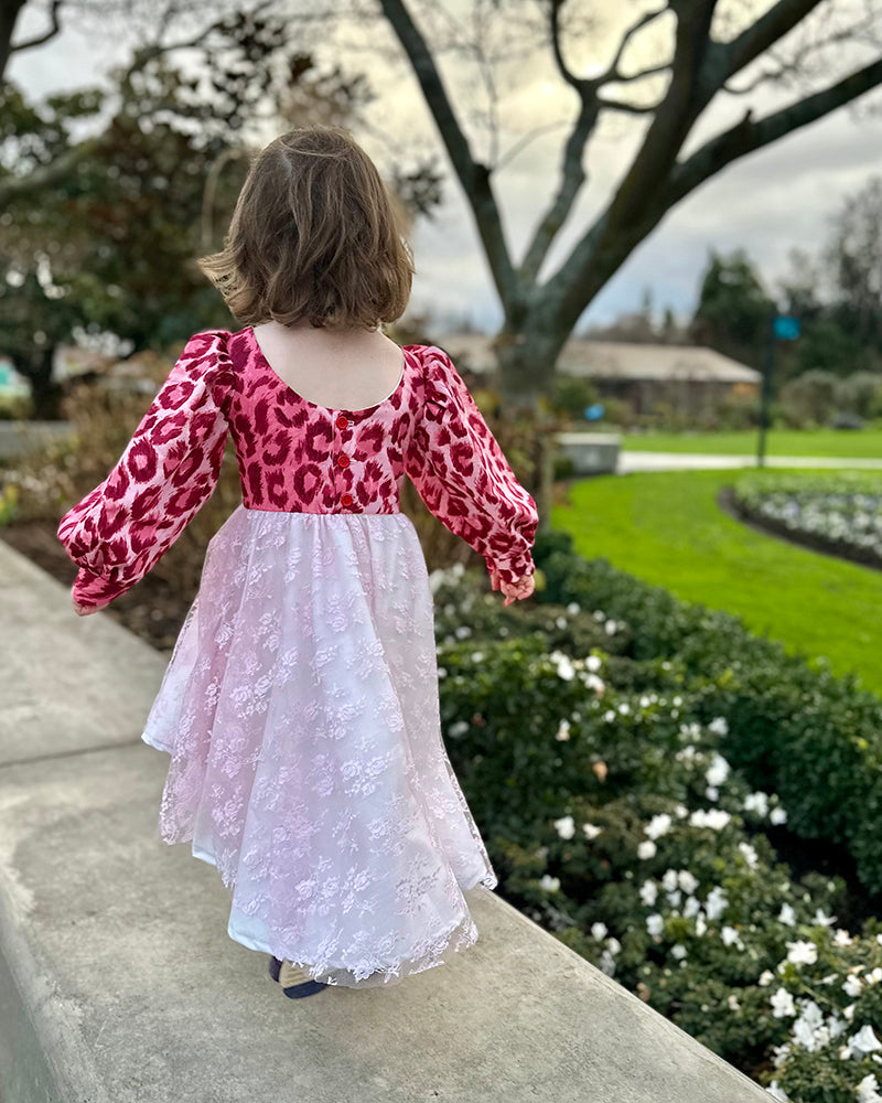 If you are looking for a twirly dress pattern with darling details, you are going to love this design! Stella's features princess seams and a scalloped/sweetheart neck on the lined bodice, short or long puff sleeves with scalloped cuffs, buttons or snaps in back, a sweet bow waistband, and a high-low circle skirt in either dress or tunic length. With all these options, you can use this pattern over and over again, all year long! Stella's is perfect for holiday parties, photo shoots, weddings, and more - plus it is comfy enough for everyday wear. Best of all, your little one is going to love it!