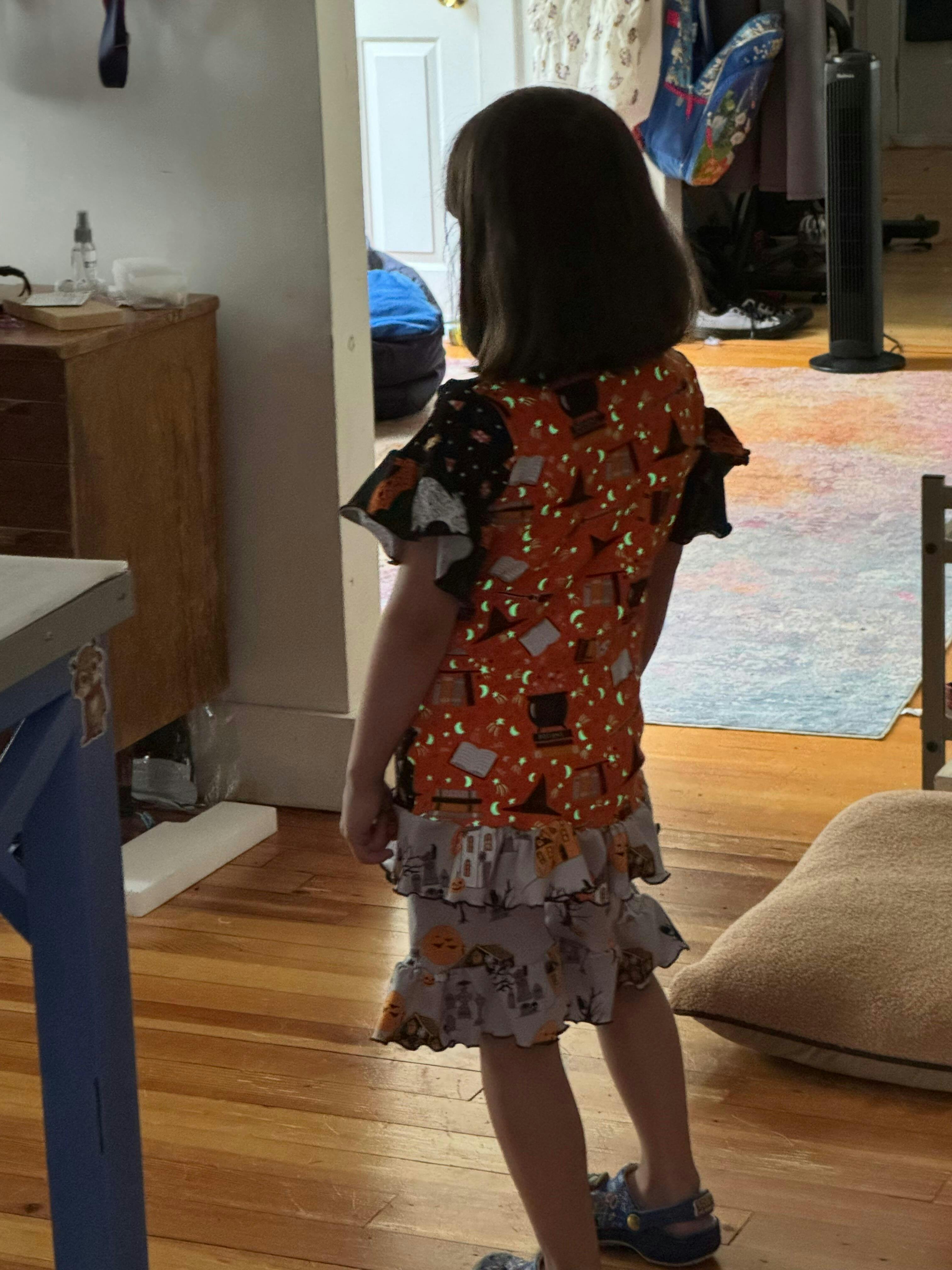 If you're looking for a knit pajama pattern that has everything, this pattern is it! Tansy's includes a nightgown with loads of options, and a two-piece top and bottoms set you can mix and match for countless combinations! You can make the gown and top to be sleeveless, short sleeves, or long sleeves - with ruffles, regular hems, or darling bow cuffs! The top and gown can have regular hems or ruffles too! The gown comes in short, mid-length, and maxi lengths. The bottoms can be either pants or shorts length, and they also have the ruffle, bow cuff, or regular hem options. Your little one is going to love these comfy new pajamas and all the variety of outfits you can make with one pattern!